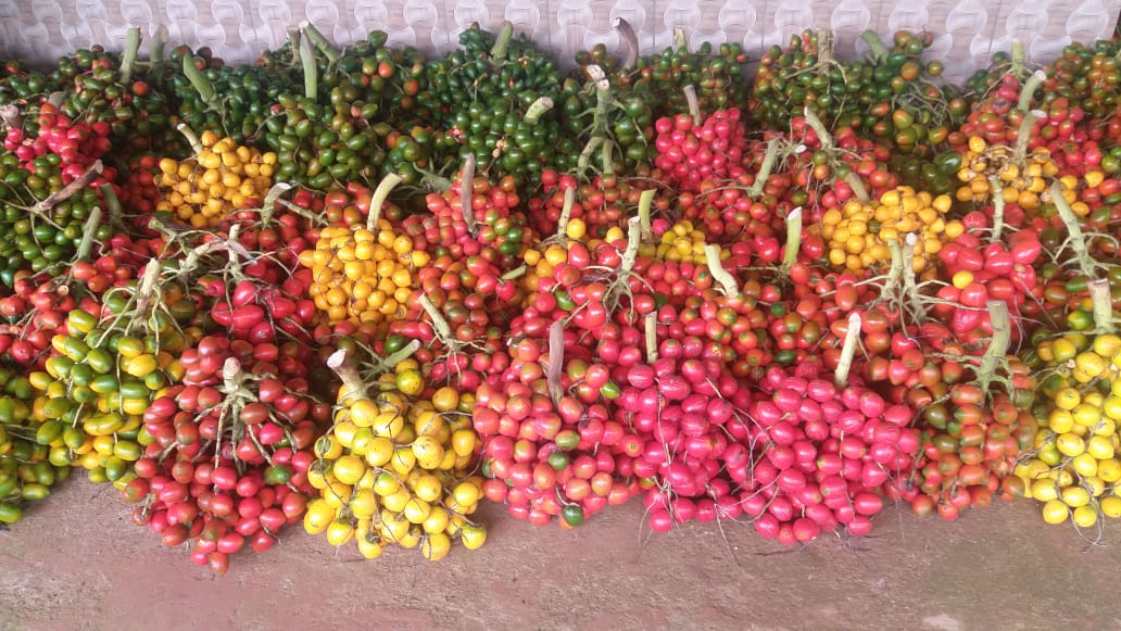 Semente oriunda da palmeira de pupunha, comercializada para plantio.
